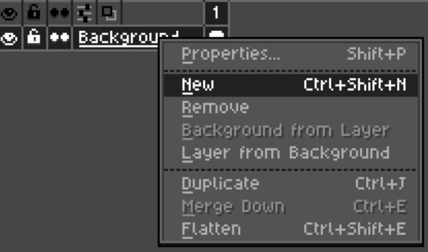 En LibreSprite tenemos la lista de capas en la parte de abajo, y podemos crear una nueva pulsando con el botón derecho y escogiendo la opción New.