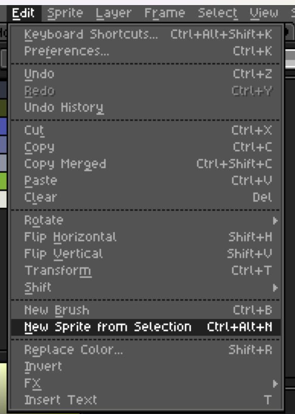 Finalmente vamos al menú: Edit > New Sprite from Selection y el elemento seleccionado aparecerá en una nueva pestaña.