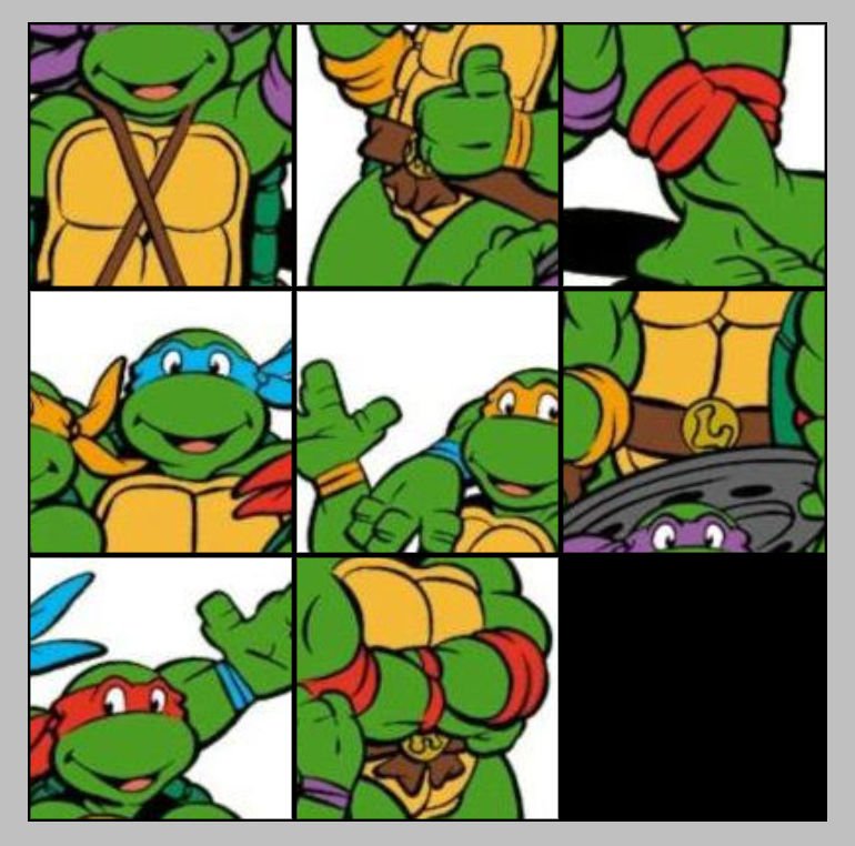 Lo primero que hay que hacer es desordenar el puzle, y para ello haremos un buen número de movimentos al azar, buscando siempre cuales son las piezas adyacente al hueco: